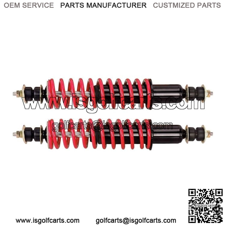 Golf Cart Coil Over Shocks for EZGO TXT 1994-up 70928-G01, 76418-G01,70630-G01- Front/Rear Heavy duty coil golf cart shocks absorber includes all the needed bushing hardware, set of 2pcs; If you need both for front and rear , please order 2 sets.- Golf Cart Shocks Fits EZGO TXT / Medalist / Marathon / ST350 1994-up gas and electric models golf cart;- EZGO TXT shock absorbers replaces OEM# 70630-G01, 70928-G01, 76418-G01;Replaces # 5006, Bushings included.- Universal for Front or Rear: These Golf Cart Shock Absorbers are work on both front and rear shocks for EZGO TXT golf carts (1994+). If you need both for front and rear, please purchase 2 sets. – Easy to install: installation instructs you to tighten the shocks until the bushing reaches the diameter of the bushing washer.- This golf cart shocks is a standard length. If your golf cart is fitted with a lifting device, the rear wheel shock absorber is not long enough and an additional linkage sleeve is required. Please check that t