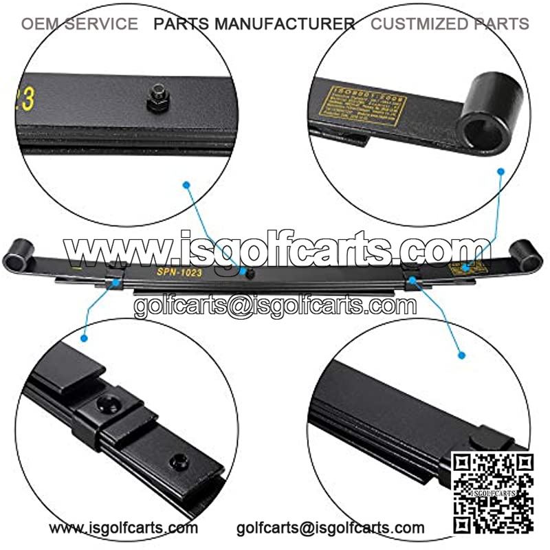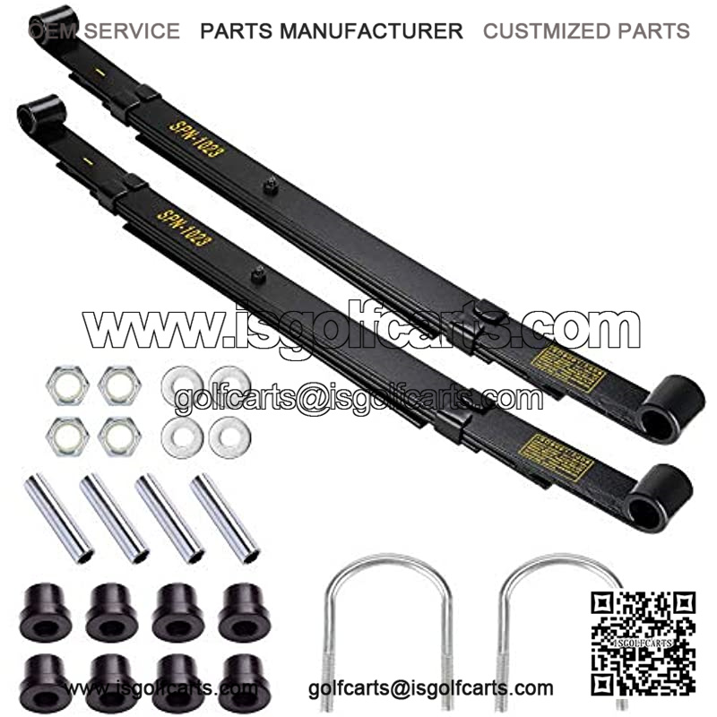 Golf cart heavy duty rear carbon steel leaf spring kit with anti-rust coating, feature a 4 leaf design and are 15% thicker on average than most oem and springs