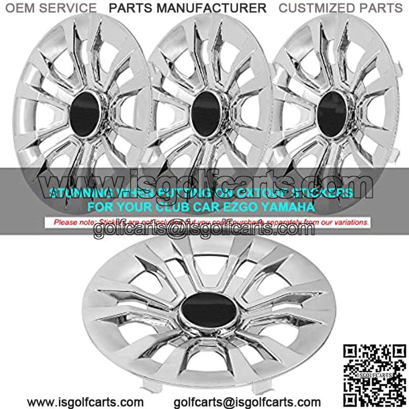 Hubcaps can be used together with brand Logo decal stickers, including Club car, EZGo, Yamaha.