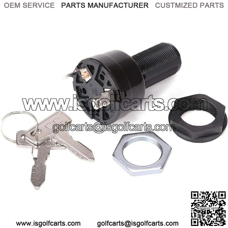 – Electric Golf Cart Ignition key switch, 2 Terminals, OEM# 102508601;- Ignition Switch Key Fits Club Car Precedent 2004+ Electric golf carts;- 2pcs Standard key, OEM# 1012505;- Nut, Key Switch OEM# 101830701;- Cap, Black Key Switch OEM# 101834502.- Package included: 1x Ignition starter switch, 2x standard keys