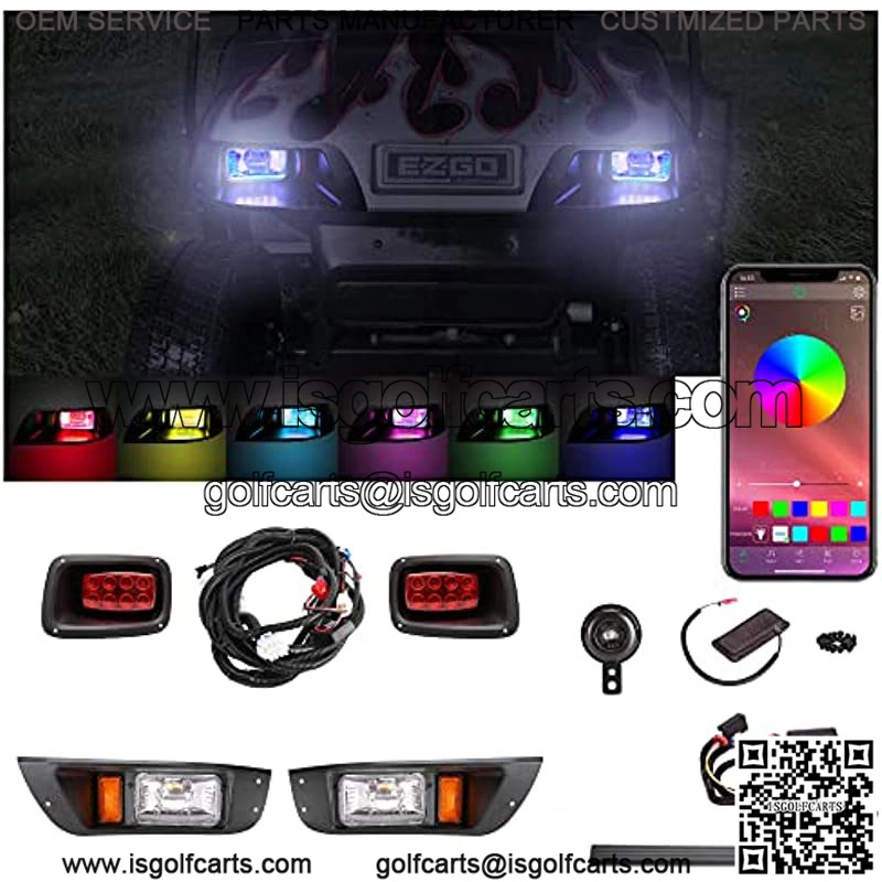 NEWEST 3rd Generation Light Kits: Fit for EZGO TXT 1996-2013 years. This newest upgrade golf cart headlight kits with the function of high beam, input voltage 16V-80V, connect the golf cart battery directly, do not need voltage reducer, it supports the 36V-48V golf cart. If the model is 12V golf cart, please pull out the plug next to the voltage converter, then combine the 2 black wires and the 2 red wires together, and then connect the power supply, and it will work normally. App Bluetooth Control Music Flashing Multicolor Timing Mode: You can download “HappyLighting” from App Store or Google Play or directly scan the QR code on the manual. Turn on the Bluetooth, connect with the lights kit and then choose the light mode you like: Adjustment function, music function, rhythm mode, flow mode and timing mode which will make your golf cart looks wonderful. Meet Local Street Standards & Ensure Safety: Living in a golf cart community and using cart daily to get around, a set of golf
