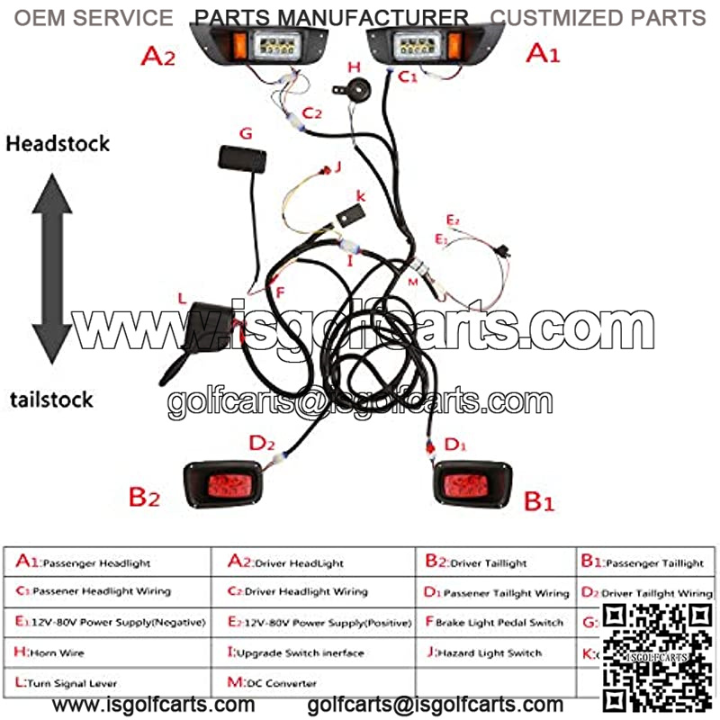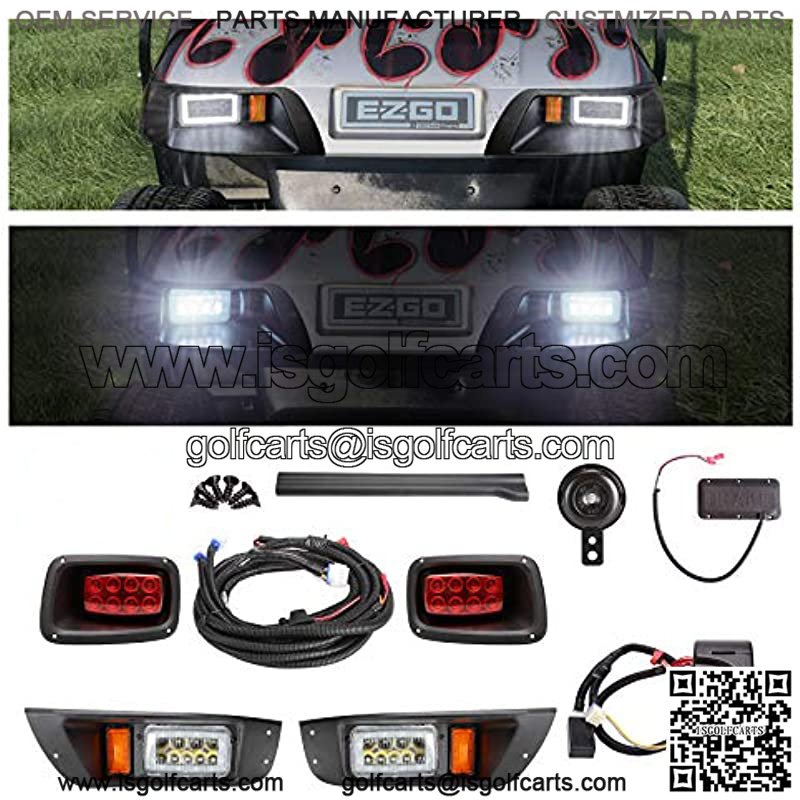 Golf Cart LED Headlights & Tail Light for EZGO TXT Carts (12V-48V) with Turn Signals Kits, Low/High Beam, Horn, Brake Pad, Daytime Running Lamp – 2 Version