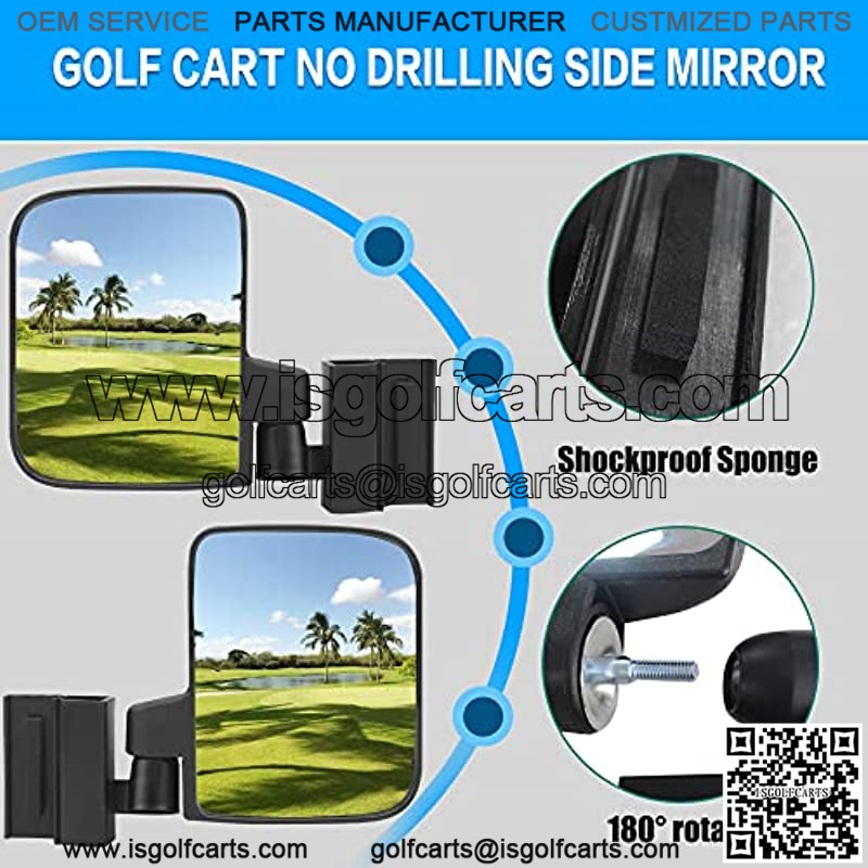 Golf Cart No Drilling Folding Side Rearview Mirror HD Glass for Club Car EZGO and Yamaha Golf Cart Folding Mirror