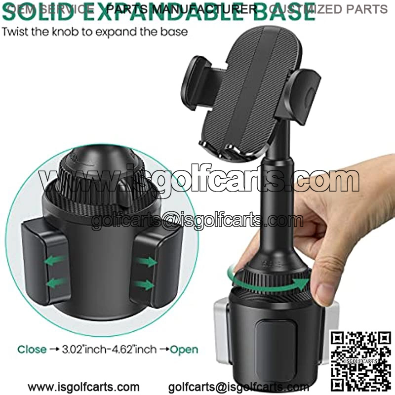 About this item ??Universal Mounting??This cup phone holder fits most golf cart models. Such as EZGO TXT/RXV, Club Car DS/Precedent, YAMAHA, etc. Also perfect for your cars, trucks etc. Does not fall out easily even on rough golf courses.??Sturdy Extendable Arm??Featuring a telescoping arm, the cup holder phone mount can reach a maximum height of 10.57″. Just pull and push to adjust the height for a more comfortable viewing experience.??Solid Expandable Base??The cup base of golf cart phone holder can be adjusted from 3.02″ to 4.62″ in diameter. Fits snugly into most cup holders without rattling or making noise while you drive.??One-Hand Operation?? The quick release button on the back of the cradle will allow you to easily pick up and place your phone with one hand.??360-Degree Rotatable??The phone cup holder mount is designed with a 360 degree rotatable ball joint that you can easily rotate and align your device, which facilitates navigation, sending and receiving calls.??Superb Compatibilit