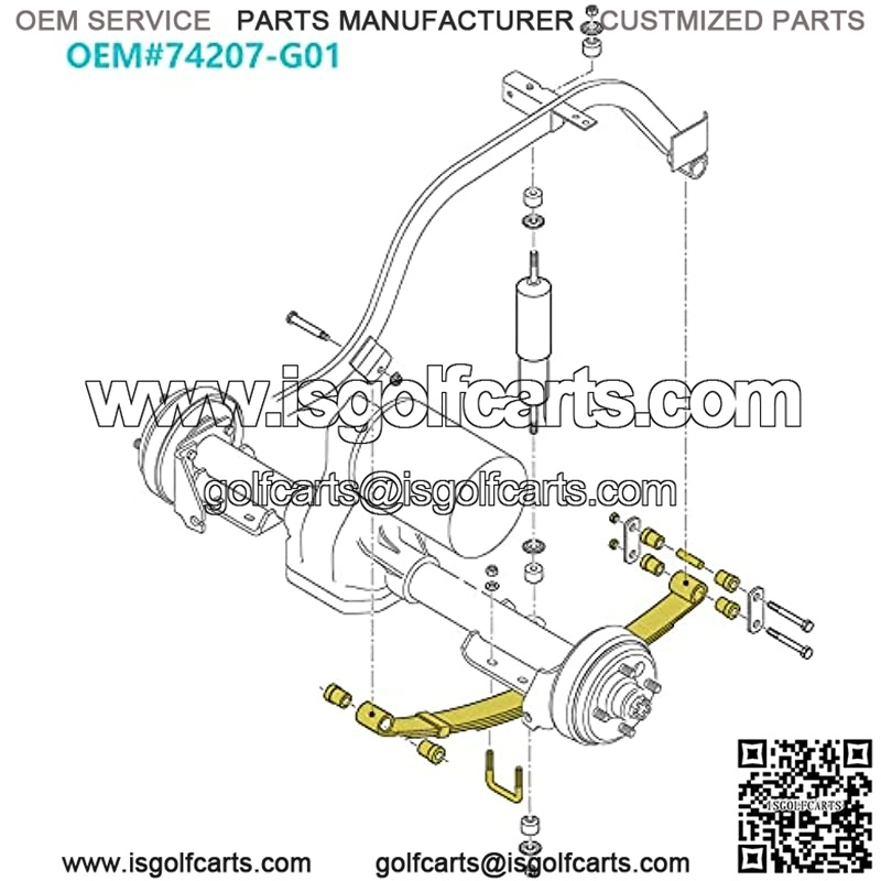 ??Suitability for EZGO TXT??EZGO leaf spring bushing kit fits for ez go txt 1994-up Electric and 1994-2009 Gas TXT golf cart models. DOES NOT FIT 2010+ GAS ??Great Replacement for Factory Springs??Heavy duty rear leaf spring kit is a must if you have a back seat. After years of running with the factory leaf springs,ezgo golf cart springs make cart ride like a new one. ??Great Upgrade to An Aged Golf Cart??EZGO heavy duty leaf springs kit with 4 leaf springs,These add the right stiffness to carry passengers and help give the cart a slight lift in the back ,heavy duty golf cart springs could raised up your cart by 1-1.5 inches ??Tips??You need shock extenders if wanted to use the factory rear shocks( which aren??t really necessary with these springs) ??What You Will Get??ezgo txt heavy duty springs also includes replacement rubber bushing for smoother , more squeak-free ride : 2 x 4 leaf Springs ,4 x metal spacers (OEM #1012303) ,8 rubber bushings(OEM #1015583).,4 U bolts (OEM# 7261