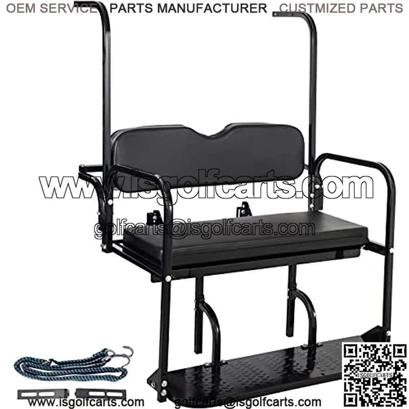 Fitment: For Club Car DS Model 2000-2013. Our golf cart rear seat is the most efficient way to enhance passenger capacity and utility. It is intended for heavy-duty use and built to last. Premium Material: Cushions are upholstered with pearl cotton and leather for comfort, style, durability, and anti-UV. Black industrial powder coating for all seat??s frame and gloss black finish to retard fading. Fold-Down Cargo Bed: Quickly convert your golf cart back seat into a convenient cargo bed by folding it down. 360-degree bed rail keeps your goods in place while on the move. Cargo deck load weight rating 1102 lbs/500 kg. Exquisite Features: Our feature-rich rear seat kit includes roof support, countered backrest, an elastic rope working as a seat belt, and footrest mounting holes for the grab bar. Improve your comfort and style with our design. Flexible Installation: The golf cart back seat features adjustable pre-bored holes to adjust up/down or left/right. An easy and bolt-on design allowing for simple assembly with basic hand tools. A full-color detailed instruction is provided.