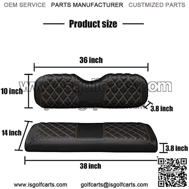 Golf cart back seat cover ,This product contains1x Rear Seat Lean Back Cover(about 36 x 10 x 3.8 inches) and 1x Rear Seat Bottom Cover(about 38 x 14 x 3.8 inches).fits the normal seat cushions of the rear seat kit.Not suitable for thicker luxury cushions