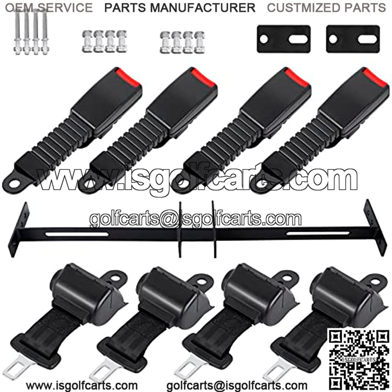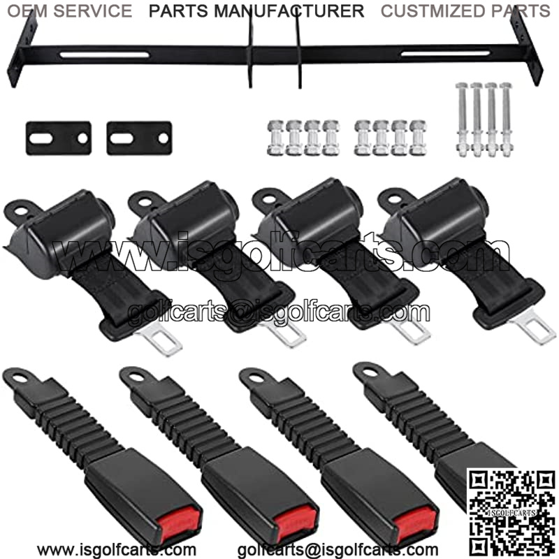 Golf Cart Seat Belt Kit 4 Passengers (2+2), Universal Seat Belts Kit, Retractable Golf Cart Seat Belts Fits 4-Seats Golf Car for EZGO, Yamaha Club Car