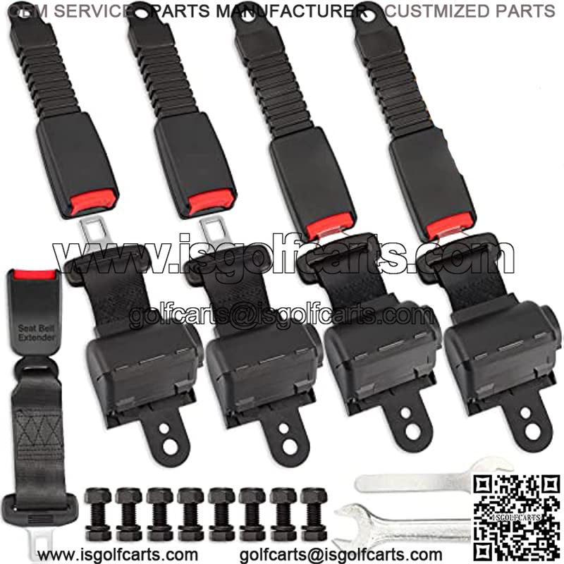 Golf Cart Seat Belts Kit, 4pcs Universal Retractable Front and Rear Golf Cart Seat Belt Kit with 1pcs Seat Belt Extender for EZGO, Yamaha, Club Car