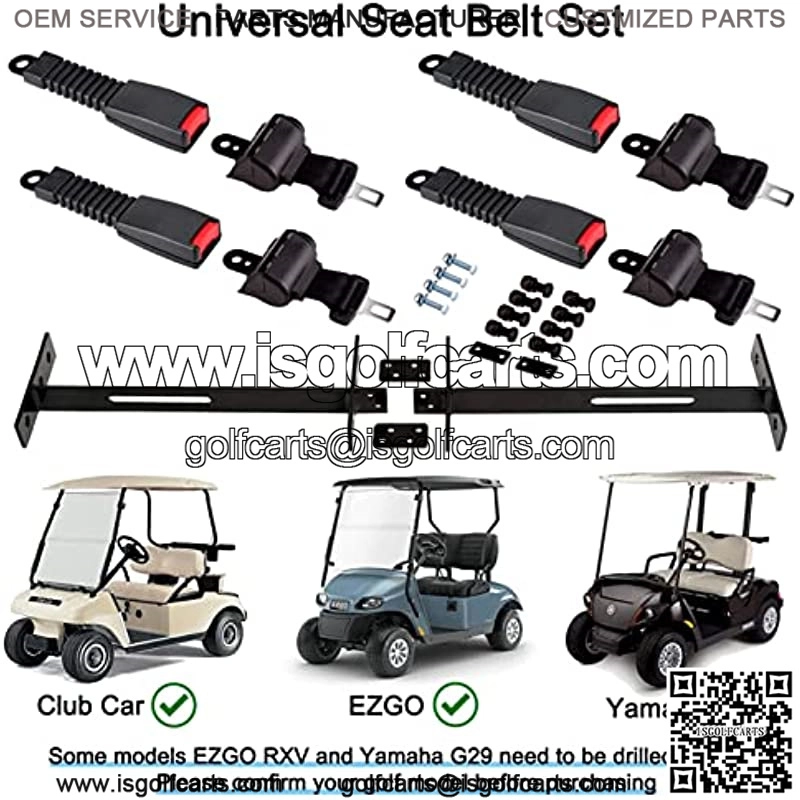 Wide Application – Universal 2+2 passengers retractable golf cart seat belts and bracket kit suitable for Club Car, EZGO, Yamaha etc.Adjustable Golf Cart Seat Belt – With L: 42in x W: 1.97in design. Will make the safest adjustment according to the user’s body.Premium Material – Our golf cart front/rear seat belt made by sturdy polyester, premium stainless steels. Providing a long life use promise.Package Include – 1x bracket, 4x seat belts with buckles and all screws gasket. Golf cart seat belt set installation Instuction is included.After-Sale Service – If you have any questions about the 42″ Golf Cart Seat Belt, please feel free to contact us for any assistance you may need.Golf Cart Accessories,Aluminum Alloy Main Bar Made of Premium aluminum alloy material, the main rod is resistant to high temperature, impact and oxidation New Smart Fastening Seat Belt The updated smart seat belt in 2022 will make the safest contraction according to the user’s body Strong belt with a maximum