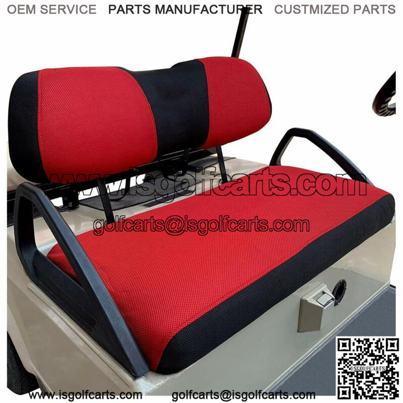 Golf Cart Seat Cover, Polyester Mesh Cover For Yamaha Club Car Precedent Red -Golf cart seat cover perfect fit for most front/ rear seat for Club Car Precedent &Yamaha carts Front seat ( If the size of your rear seat same as your front seat, then you can take this L size), Not for EZGO TXT RXV golf cart;- Golf cart seat cover size information: Seat cover size:38.61(L)*19.3(W)*3.94(H) inch, Back Cover size: 36.61(L)*10.43(W)*5.9(H) inch;- Made with breathable washable polyester mesh cloth, keeps the seats cool in the summer heat and warm in the winter;- Golf cart seat cover extends the life of older or damaged seats, keeps your seat clean, free of dirt, dust, scratches and spills;- In Two-Tone ( beige blue color seat cover) which looks very stylish, renew your golf cart seat;- Easy to Install and Stay Dry, Toolleadjustable straps and retractable buckle design help you install easily and remove in minutes;- Easy to clean, just throw it in the washing machine and air dry, folds easily for packing, lightweight;- Package: 1 set golf cart seat cover(include seat bottom cover and back cover) , If you have rear seat, you should by two sets;- Best Gift for DEDICATED GOLFER,GOLF FANS,MEN,FATHER,BOYFRIEND.