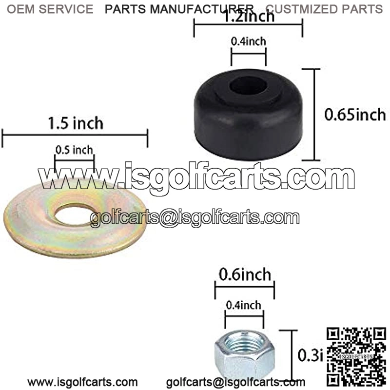 EZGO/Club Car golf cart shock absorber cushion bushing kit Fits EZGO TXT & Marathon 1989-up golf cart front or rear shock absorber. Replaces OEM# 10194G1, 10435G1, 00532-G6, Cushman 810157 810758 Fits Club Car DS & Precedent 1982-up golf cart rear shock absorber, Replaces OEM# 1010142, 1011415, Aftermarket# 5030 Pacakge content: 4 rubber cushion bushings, 4 retainer washers, 4 hex nuts 3/8-24Upgrade Light Kit 36V Battery Charger Front Inner Basket Enclosure Cover Golf Cart Cover Windshield Fit Models EZGO TXT G&EEZGO TXT 36V ElectricEZGO TXT G&EEZGO TXT G&EEZGO TXT G&EEZGO TXT 1995-2013Accelerator Pedal Hip Restraint Fender Flares