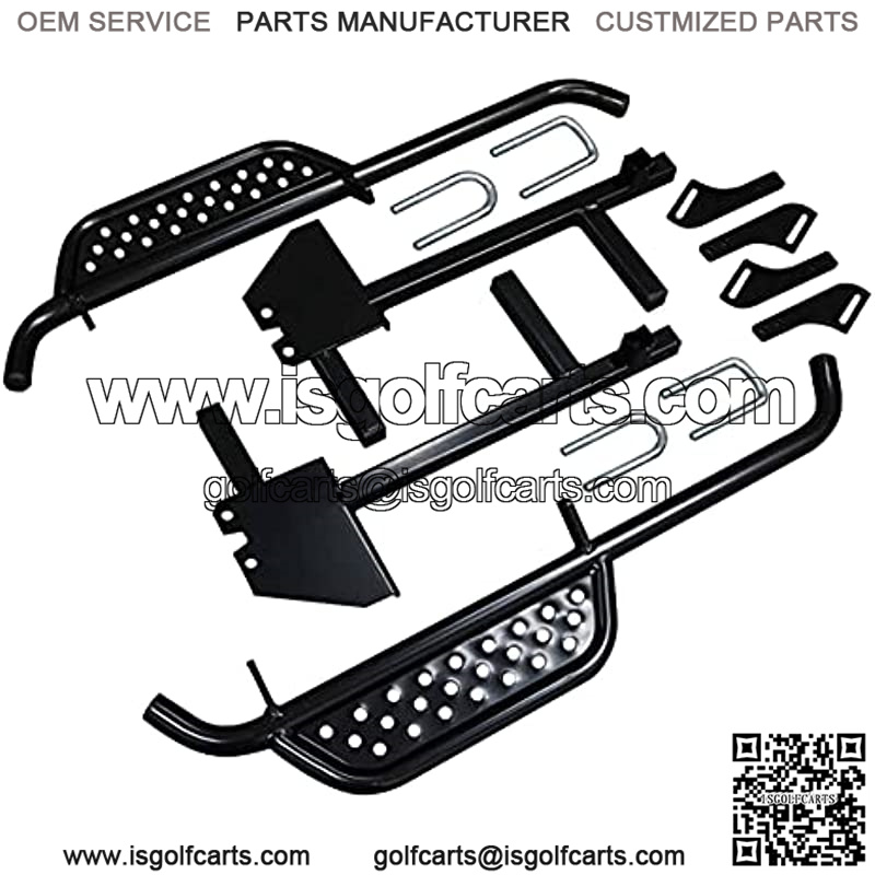 Climbing in and out of your golf cart has never been easier than with the Golf Cart Side Board Nerf Bar kit. This kit includes a set of Driver and Passenger Nerf Bars for the Club Car DS (2004 to present, Gas and Electric) and all necessary mounting hardware and instructions. It is engineered with durable, high quality steel, machine welded for long-lasting strength, and complemented with black weather-resistant powder coating. Easy DIY installation takes up to 1 hour to finish, plug and play using the included hardware and step-by-step instructions. A great upgrade to both the looks and functionality of your cart and a perfect complement for golf carts with lift kits.Note – Comes with the adapter bracket kit designed to fit on all Club Car DS Golf Carts.Compatible with 2004-Up Club Car DS gas & electric golf carts.