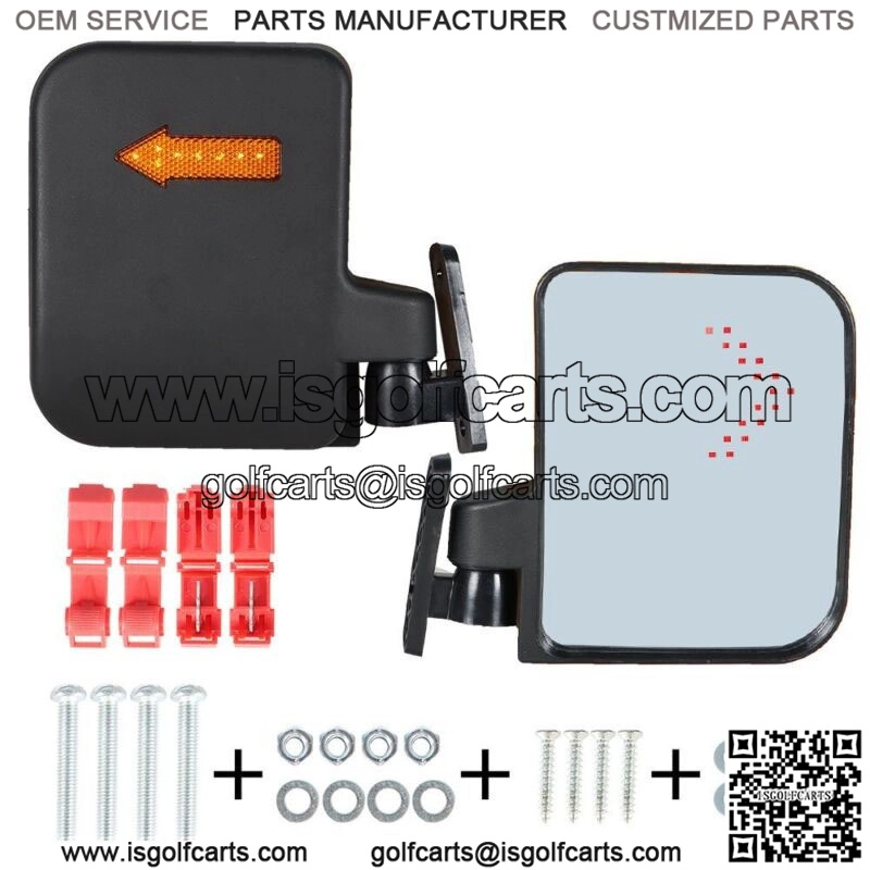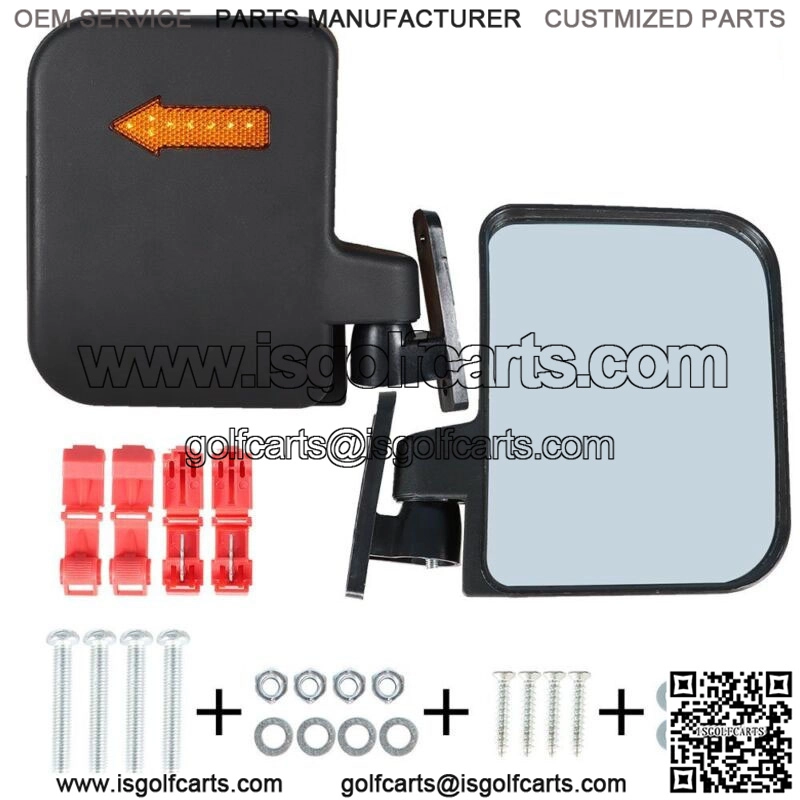 12 Volt Golf Cart Side Mirrors W/ Turn Signal Lights / Blinkers For EZGO Club Car YAMAHA This Listing Includes a set of 2 side mount mirrors with LED turn signal blinkers