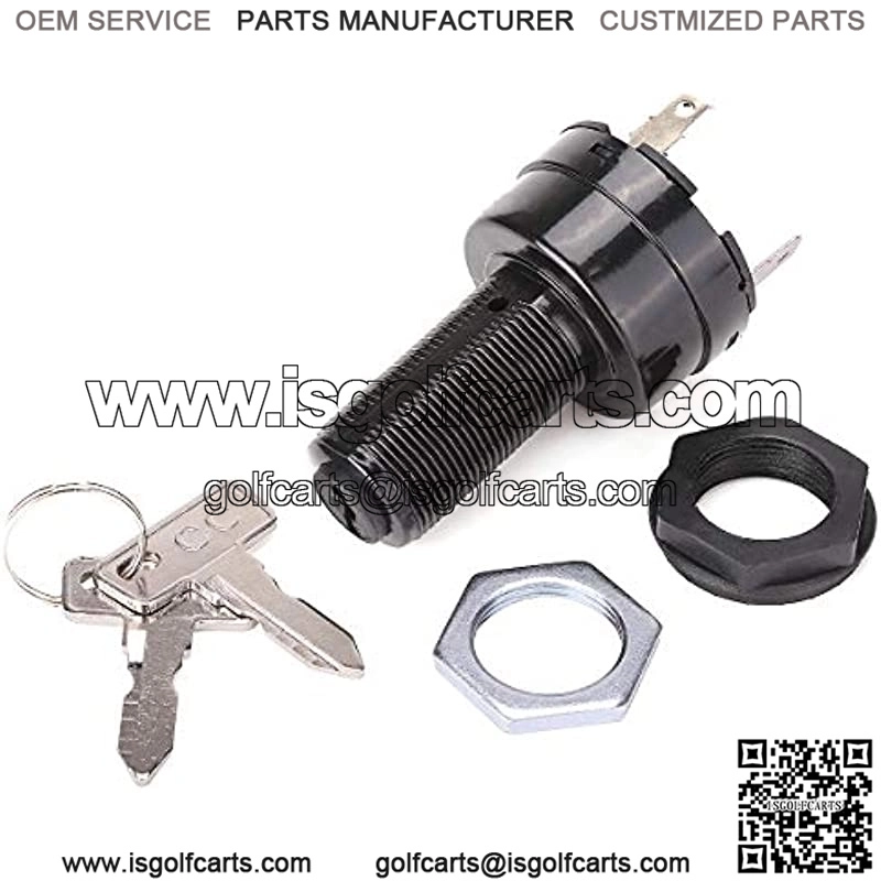 The Electric Golf Cart Ignition/Key Switch, for Club Car Precedent Key Switch,Electric,2 Terminals (included 1Pcs),OEM#102508601 Uses standard key(included 2Pcs), OEM#1012505 Cap,Black Key Switch (included 1Pcs),OEM#101834502 Nut,Key Switch (included 1Pcs),OEM#101830701