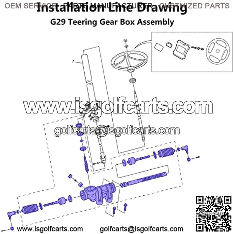 When the steering wheel and tires of the golf cart are kept straight, tighten the steering joint and the installation is complete (Don’t forget to lubricate oil the end of the rod after installation).
