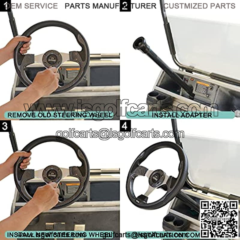 Function: The steering wheel adapter needs to be used with the steering wheel; it can help to replace the old faded steering wheel you had, made your golf cart look like new again. Dressed up and enhanced overall appearance over the stock golf cart steering wheel.(Steering Wheel Required and please place an order together)