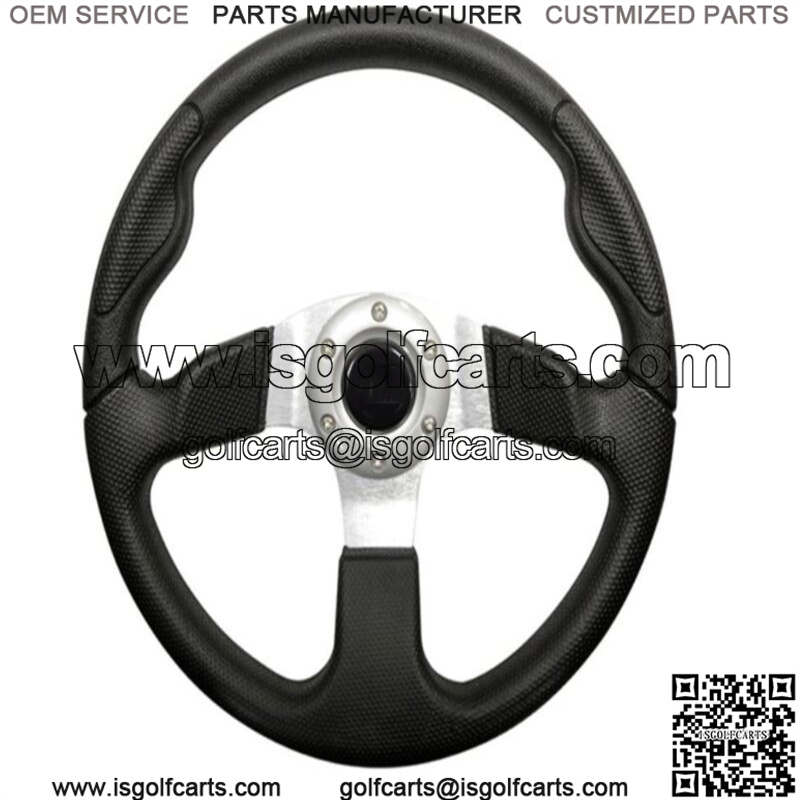 . Includes (1) Custom Steering Wheel- 13. Diameter (adapter NOT included) . Style: Formula GT . Color: Formula GT Black Grip and Brushed Aluminum Spokes . Easy installation on EZGO, Club Car and Yamaha Golf Carts . Custom Steering Wheel Adapter (5 or 6 hole) is required and is sold separately . Horn button is for aesthetic purposes only .