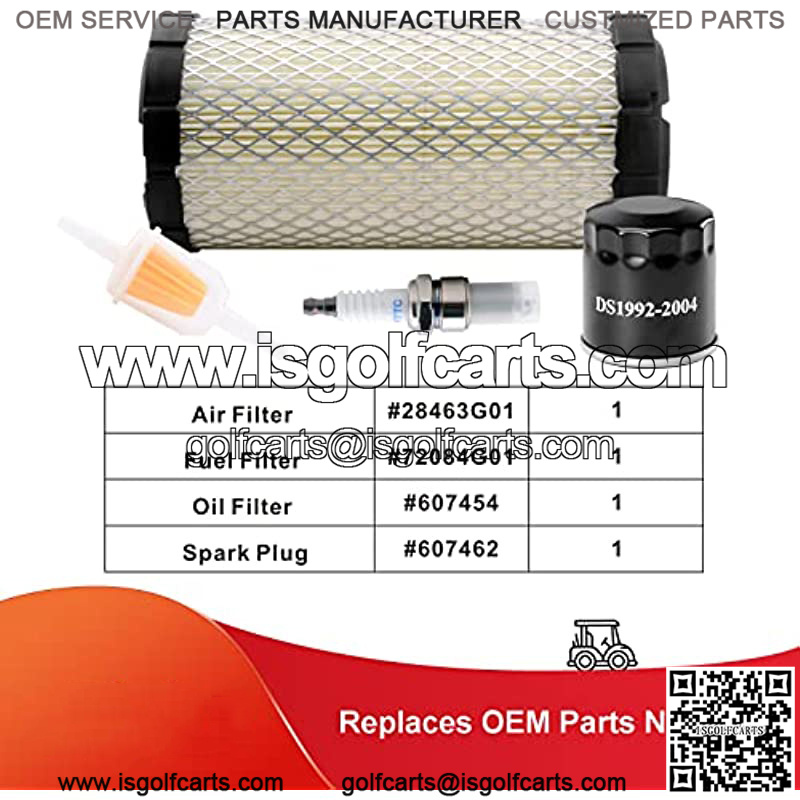 Spark Plug OEM #: 607462 ,Air Filter OEM #: 28463G01, Oil Filter OEM #: 607454, Fuel Filter OEM #: 72084G01.