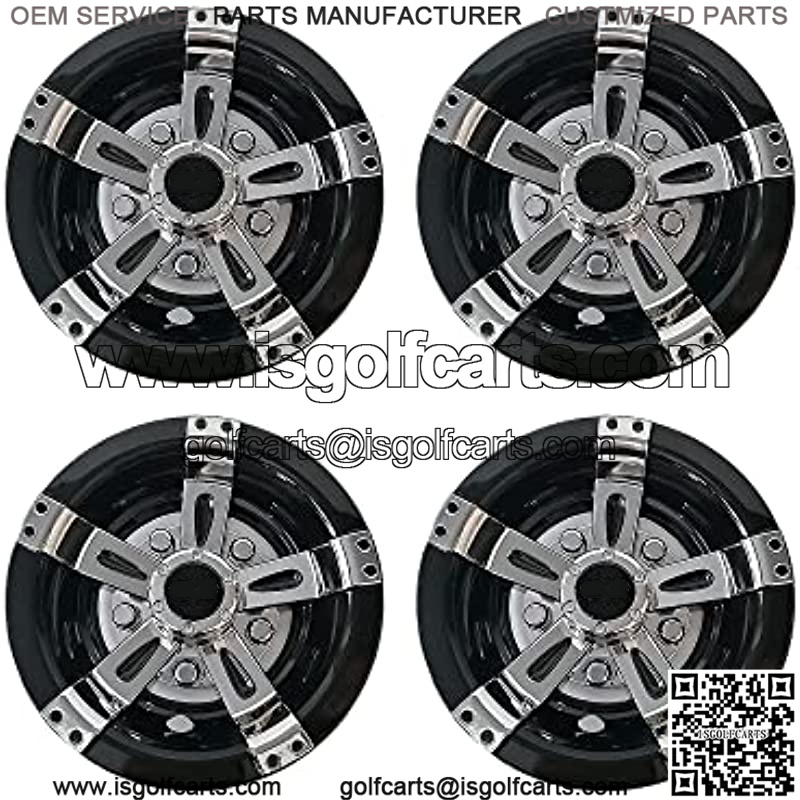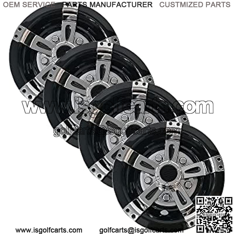 4x Chrome Black Golf Cart Hub Caps 8 Inch Wheel Covers For EZGO Club Car YAMAHA