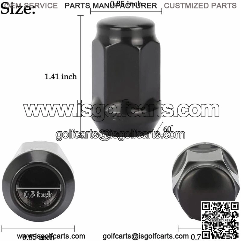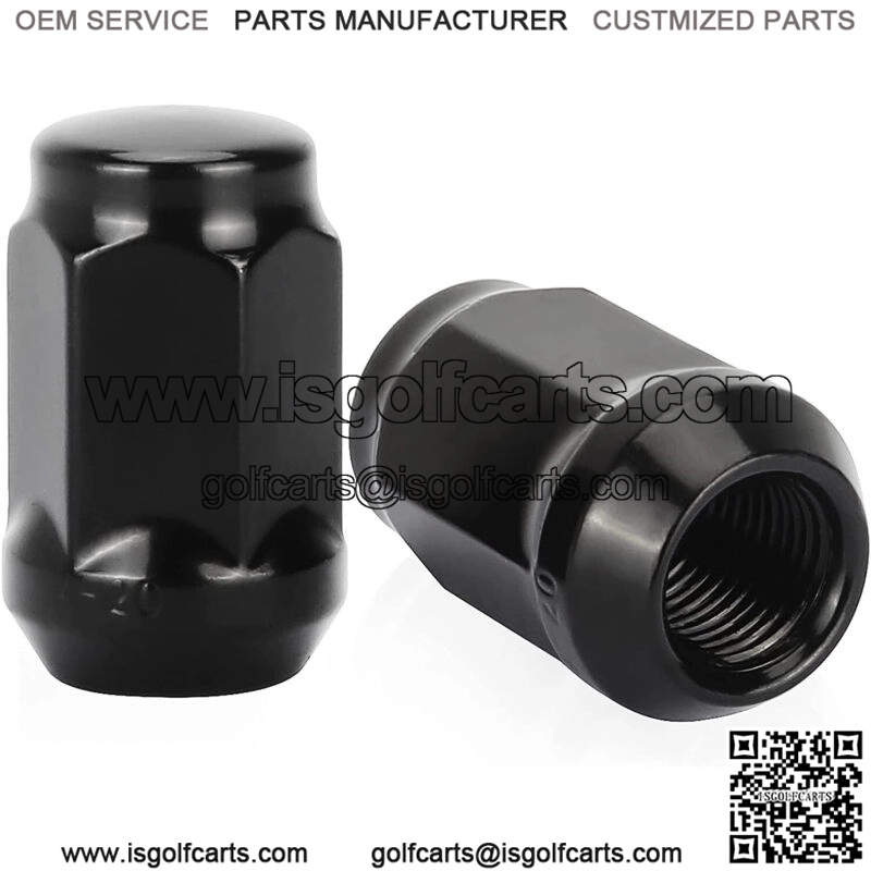 Golf Cart Wheel Lug Nuts for EZGO Club Car 16Pcs Black Standard Threads- Set of 16 Black lug nuts fits EZGO and Club Car golf carts only; Don’t fit Yamaha golf cart.- Thread size: 1/2 inch-20,- Height: 1.40 inch,- Hex Size: 3/4 inch.- The sleeve to install and detach is not included. You need to order it yourself.- Please confirm the size before you order.- The lug nut needs to be installed with a 6 point spline tuner socket key tool (tool is not included).