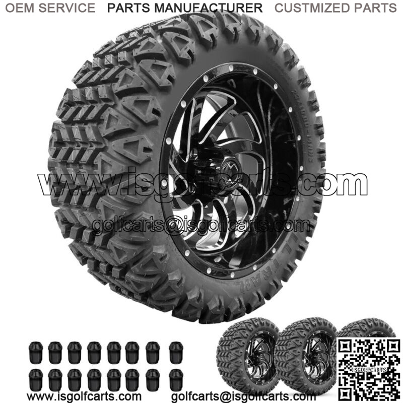 Golf Cart Wheels 14″ Phantom Gloss Black on 23″ AT Tires Carts Set of 4