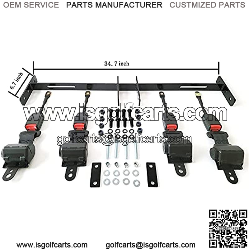 Golf Carts 4 Sets Retractable Belt Kits with Bracket/Bar Kit for EZGO Yamaha Club Car