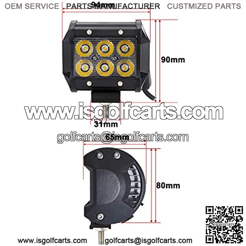 ??High Brightness and Spot Beam??Adopted 6pcs 3w green yellow led chips directly, 18w 1800Lm each piece, 36w 3600Lm each pair. 30 degree spot beam, provides further illumination range, allowing you to see the front more clearly at dark night or in foggy weather without disturbing your coming vihecles; Size: 94mm*80mm*65mm; 3.7″*3.15″*2.56″;