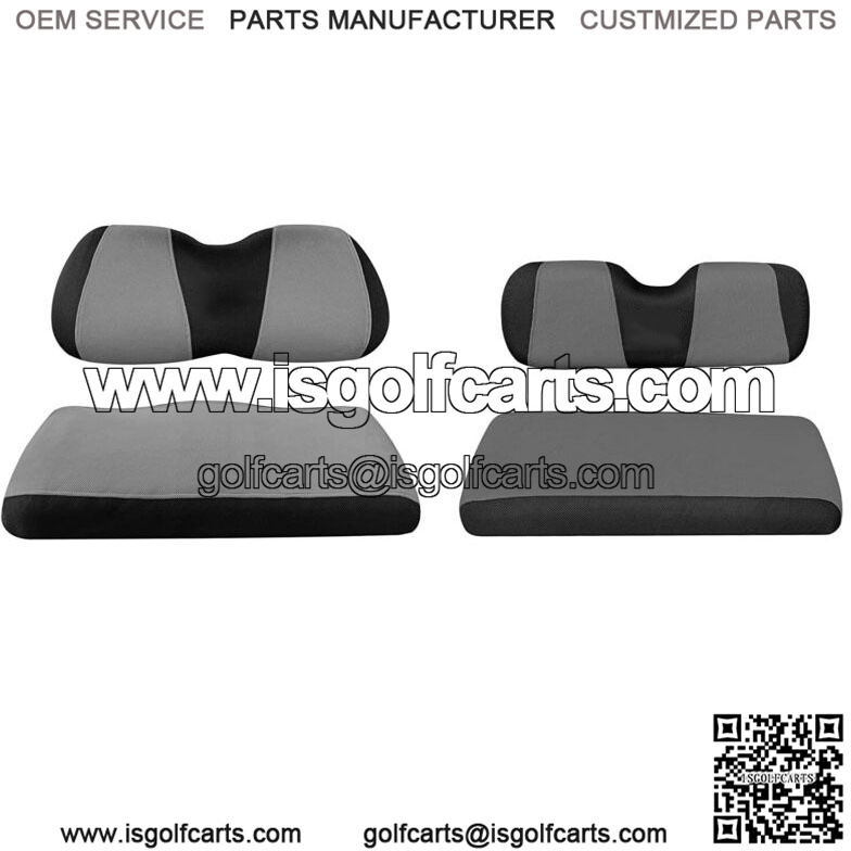 Grey Golf Cart Front Rear Seat Covers for Club Car Precedent Yamaha 4 Passenger- This golf cart seat cover set fit for Club Car Precedent and Yamaha golf cart Front seat and Rear Seat ( the rear seat size is smaller than front seat, please check your seat size before purchase)- Front seat cover: Seat cover size:38.61(L)*19.3(W)*3.94(H) inch, Back Cover size: 36.61(L)*10.43(W)*5.9(H) inch;- Rear Seat Cover: Seat Cover Size(37.5( L )*13.5(W) *3.7(H)inch and Backrest Cover Size 35(L) *9.5(W) *3(H) inch- Golf cart seat covers made with breathable washable polyester mesh cloth, keeps the seats cool in the summer heat and warm in the winter;- Golf cart seat cover extends the life of older or damaged seats, keeps your seat clean, free of dirt, dust, scratches and spills;- In Two-Tone ( Grey Black color) which looks very stylish, renew your golf cart seat;- Easy to Install and Stay Dry, Toolleadjustable straps and retractable buckle design help you install easily and remove in minutes;- Easy to clean, just throw it in the washing machine and air dry, folds easily for packing, lightweight;- Package: 1 set golf cart front seat cover + 1 set golf cart rear seat cover;- Best Birthday gift/ Christmas gift for DEDICATED GOLFER,GOLF FANS,MEN,FATHER,BOYFRIEND.