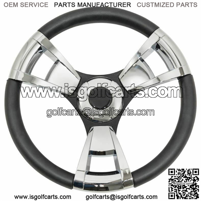 . Includes (1) Chrome Accent Steering Wheel . Fits all EZGO Golf Carts . Also fits STAR Golf Carts . 14″ Outer Diameter . Polypropylene Wheel with Molded-In Aluminum Hub, so no adapter needed . Chrome Accent** for a Custom Appearance . Soft Touch Grip . High Quality Marine Grade Components . Deck out your cart with this stylish, comfortable steering wheel . Upgrade your standard steering wheel .