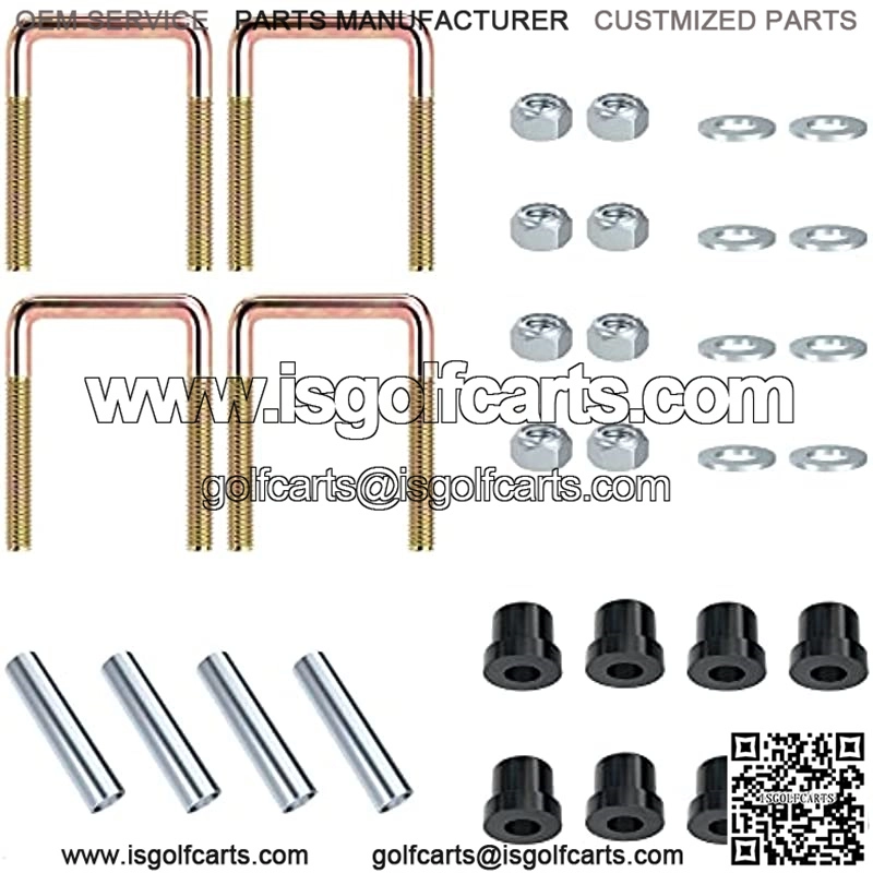 Heavy Duty 4 Leaf Rear Spring Kit for EZGO TXT Electric 1994-up & Gas 1994-2009 Golf Cart, Includes Bushings, Sleeves, U Bolts, OEM: 70506-G01 74135-G01 74207-G01 74207-G02 74207-G03