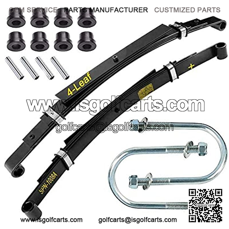 Heavy Duty Rear Leaf Springs for Club Car DS Golf Cart 1982+ (4 Leafs/Set of 2), Bushing Kits & U Bolt Kits Included