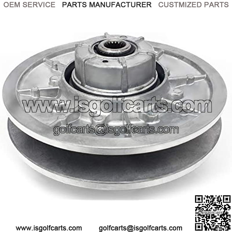 Brand New 28 degree driven clutch Easy to install, direct bolt on. Made of high quality solid aluminum alloy and adopt high pressure casting, durable, and sturdy in use, wear resistance and good heat dissipation. With heat-treated center shaft and balanced sheaves, the performance of our cart driven clutch is very reliable and stable. Direct replacement +++ Die cast unit +++ Machined and balanced +++ Meet the manufacturer’s original equipment specifications