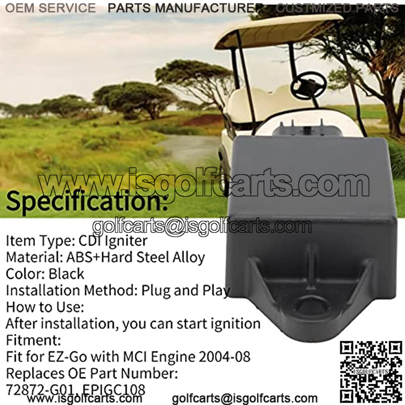 FITMENT——— CDI Igniter replacing OEM numbers for reference is EPIGC108, 72872-G01, with good applicability. Aftermarket replacement CDI Igniter fit for EZ Go with MCI engine 2004 2008.