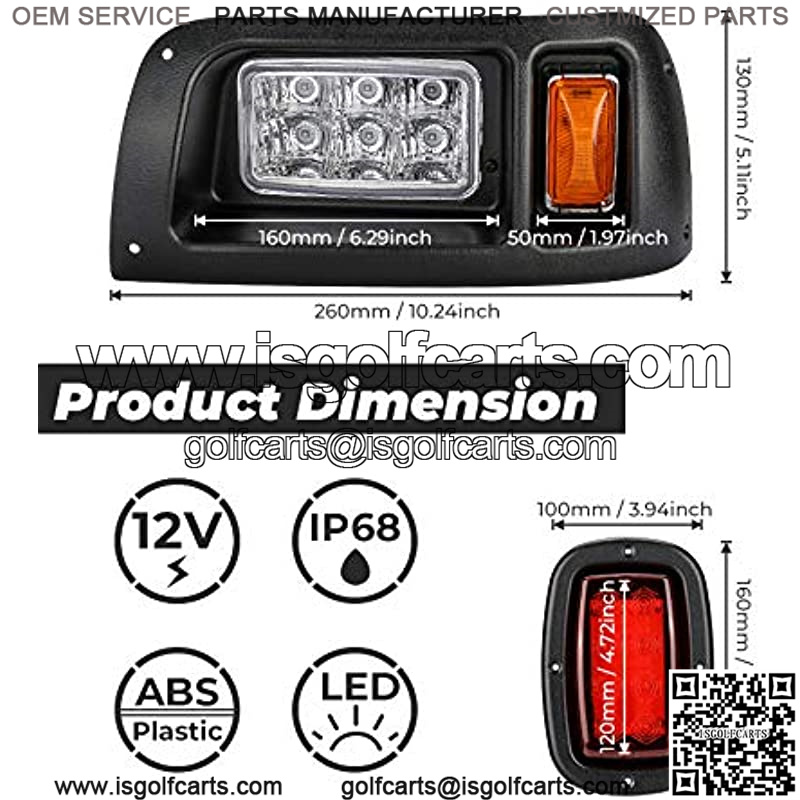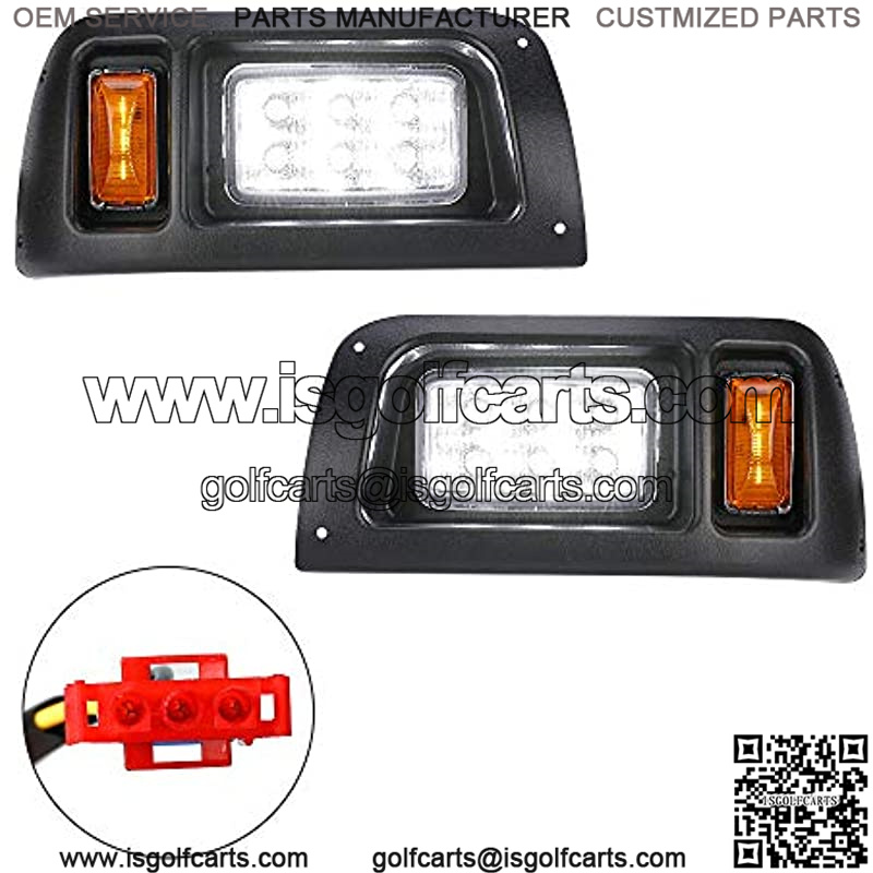 Bring your golf cart into the 21st century with this bright and energy-efficient Basic Light Kit Fitment: Compatible with Golf Cart Club Car DS Gas or Electric Model 1993+ Feature: 1. Automotive-style adjustable headlights with the turn of a screw 2. New and improved wiring connectors, Voltage: 12V 3. Injection-molded plastic bezels – BLACK 4. High-Quality Mounting Screws for Long Lasting Durability 5. These LED Headlight kits come with a larger heatsink to better dissipate the heat, which gives our light kits a longer life 6. The club car light kits are water-proof due to the components are sealed with silicon, which will prevent water from going in and burning the bulbs Tips: If you have 6 volt or 8-volt batteries a voltage reducer is recommended to protect your golf cart’s batteries