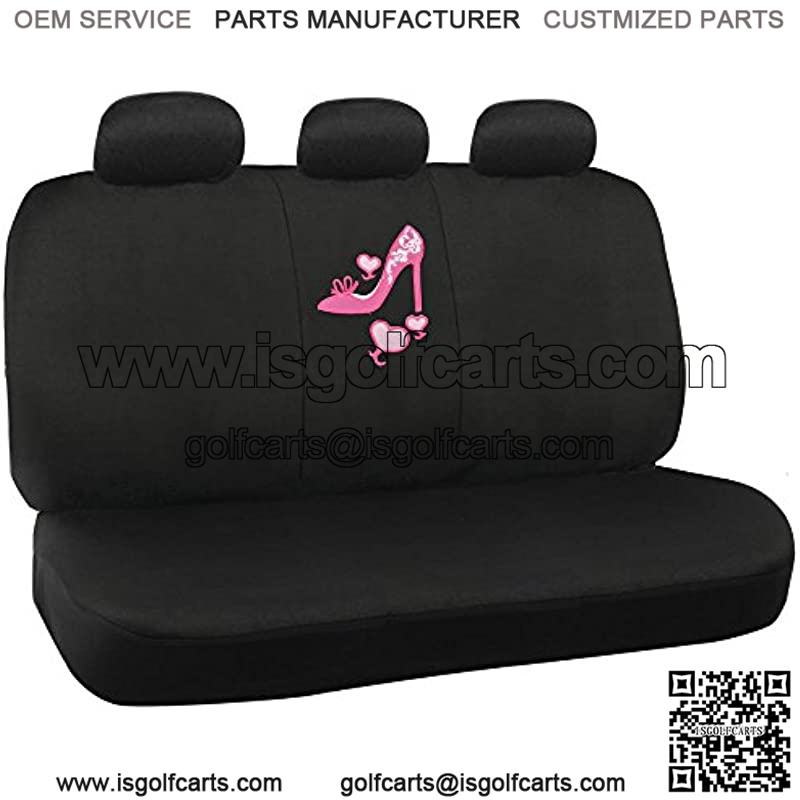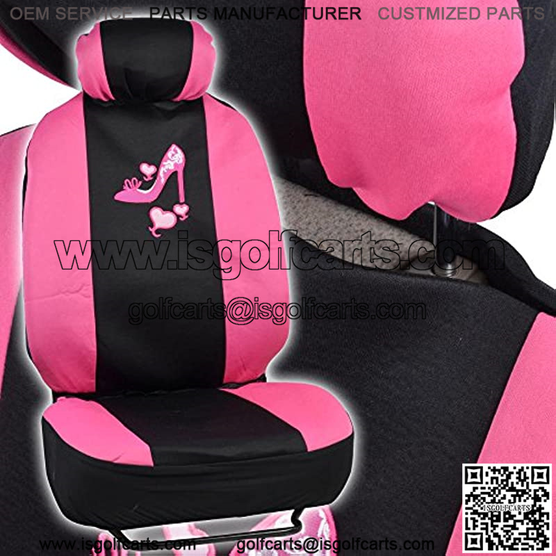 Instantly customize your car, truck, van, or SUV with this brand new bright “Pink Shoe” design accessories car interior set. Installation is simple, no tools required. Seat covers fit all standard bucket seat. Double stitched seams for lasting durability.