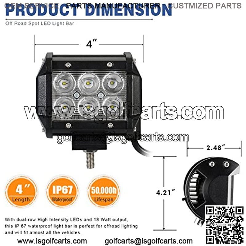 ??Brighter Your Night??: Our 4 inch led light bar is equipped with 6, three watt high intensity LEDs. That??s a total of 18W with a 6,000k color temperature. This light bar will extend your field of vision, giving you a better driving experience.