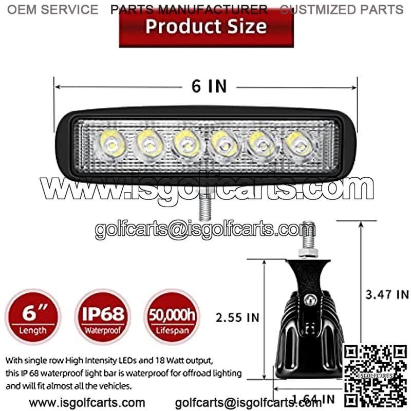 Brighter Your Night: Our LED light bar is equipped With 6, 3 watt high intensity LEDs.That’s a total of 18W with a 6,000K color temperature, This 6 inch light bar will extend your field of vision, giving you a better driving experience.