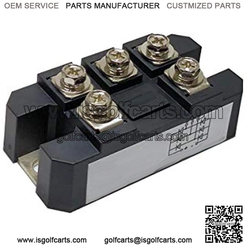 bridge rectifier for golf cart for lawn mower Function:Device for converting three-phase AC to DC . Voltage??1600V Current??150ARepetitive Peak Reverse Voltage V??RRM)?? 1600VIsolation Voltage V??ISO????2500VMax. Junction Temperature: 150??Size: 80*40*27mmmmFeatures1.Electrically-isolated chip and baseboatdAC 2500V2.Welding technique under the protection of vacuum and hydrogen gas 3.Convenient installation, use and maintenance 4.Compact and lightweight 5.Max.work junction temperature up to 150t)6.Low forward voltage dropTypical Applications1.Dc power supply for instrument equipment2.Input of PWM frequency converter3.Rectifying power supply4. Excitation power supply for DC motor5.Rectifying input of switch power supply6.Soft start capacitor charging7.Electric power drag and au