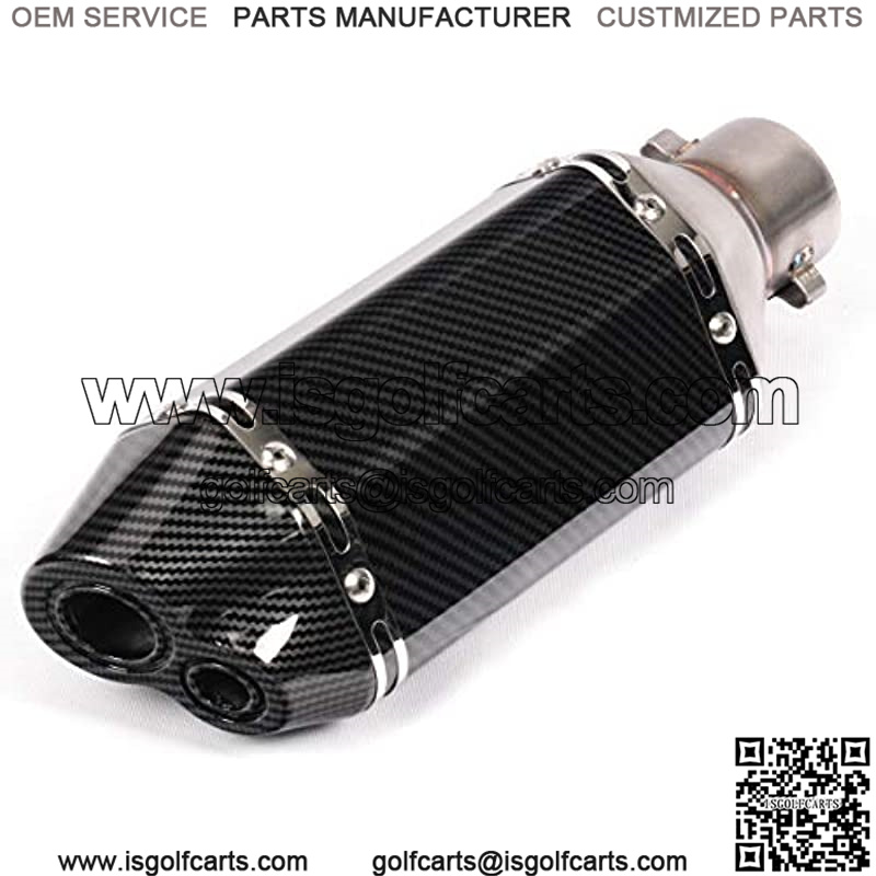 Motorcycle Dual Outlet 12.2″ Universal Exhaust Muffler Carbon Pattern Stainless Steel Slip on 2″ Inlet with 38 to 51mm Welding Adaptor NO DB Killer Silencer