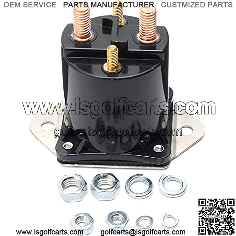 Specs:Unit Type: Solenoid – RemoteVoltage: 12Dimension: Battery Terminal: 5/16-18; Motor Terminal: 5/16-18; Switch Terminal: 10-32; Ground Terminal: 10-32; Relay Terminal: N/A; Notes: Isolated GroundReplaces OEM Numbers:ARROWHEAD: LPL6003CLUB CAR: 1012275, 1013609J N: 240-20013STENS: 435-154Compatible With/Replacement For:Club Car Carryall Series 1992-1997, DS Series 1984-2007, Precedent Series 2004-2008