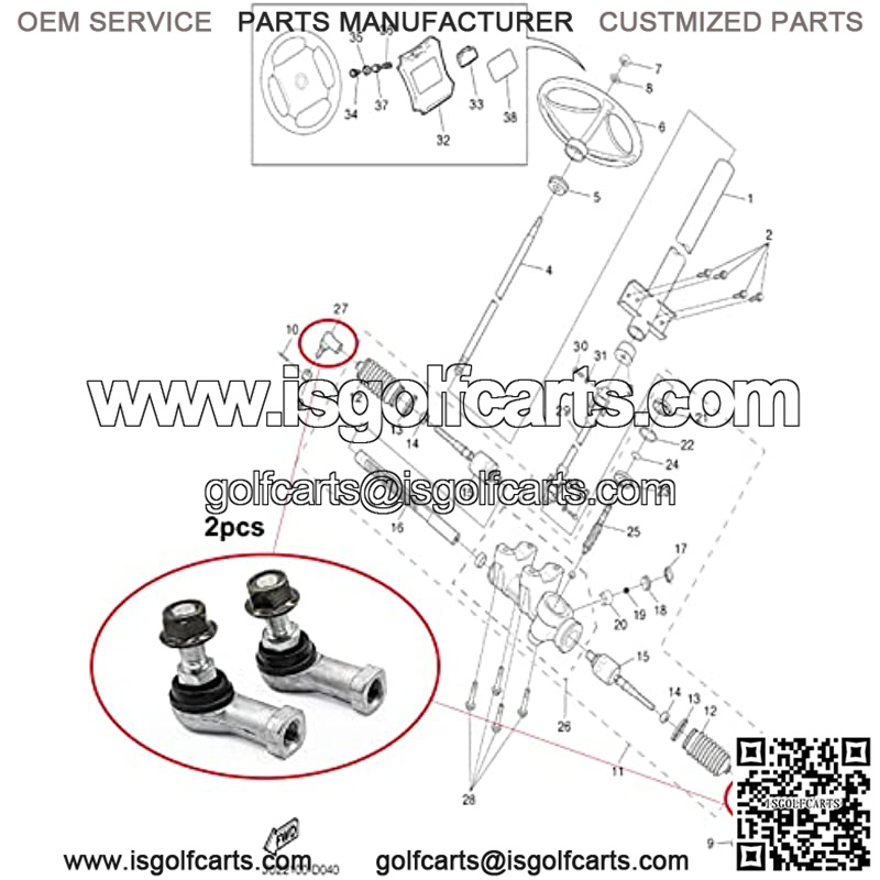Outer Tie Rod End for 2003-Up Yamaha Gas and Electric G22 G29 Golf Cart JU0-F3841-00 2 Packs