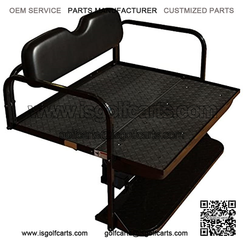 This seat kit makes a great addition to any golf cart converting your 2 passenger golf cart in to a 4 passenger golf cart. This seat kit includes the Flip Folding capability which allows the bottom seat cushion to flip over and converts the 4 passenger golf cart in to a very strong utility cargo bed featuring our HD Poly Deck for ultimate strength and versatility measuring 42W X 36D. We also include a grab strap to assist when flipping the seat from the closed 4 passenger design over to the cargo bed design. Seat Cushions: All seat cushions are marine grade and are factory matched colors. The back of the seat cushions have a polypropylene backing with pre tapped bolt holes for the seat cushions to mount to. Also with the NO Rot, NO Wood design and the use of polypropylene seat backing you no longer have rotting wood on the backs of the seat in a few years. Installation Details: This items will require 1.5 to 2 hours to complete the installation, however we do include very nice FULL COLOR installation instructions that are clearly labeled. All mounting hardware, bolts, and supports are included, this will make for an easier stress free installation – With this seat kit you will remove your factory basket behind the seat along with all of the brackets that connect the seat to the golf cart. This kit will replace the removed brackets and this kit will include new rear roof supports. – Technical support is always available by phone or email ready to answer any questions. – Estimated Installation Time is 1.5 to 2 Hours