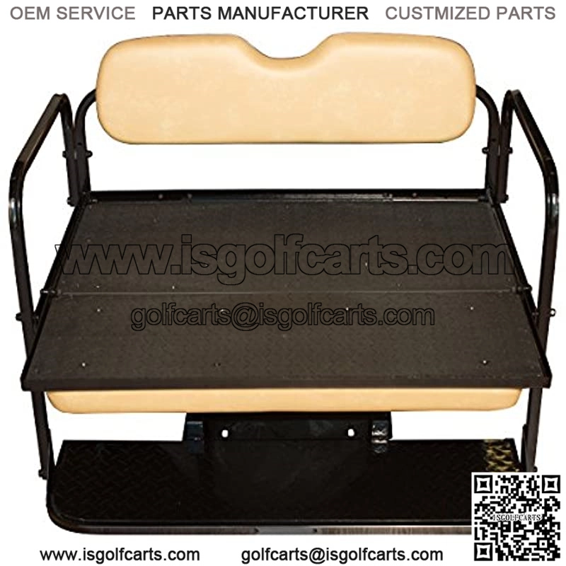 This seat kit makes a great addition to any golf cart converting your 2 passenger golf cart in to a 4 passenger golf cart. This seat kit includes the Flip Folding capability which allows the bottom seat cushion to flip over and converts the 4 passenger golf cart in to a very strong utility cargo bed featuring our HD Poly Deck for ultimate strength and versatility measuring 42W X 36D. We also include a grab strap to assist when flipping the seat from the closed 4 passenger design over to the cargo bed design. Seat Cushions: All seat cushions are marine grade and are factory matched colors. The back of the seat cushions have a polypropylene