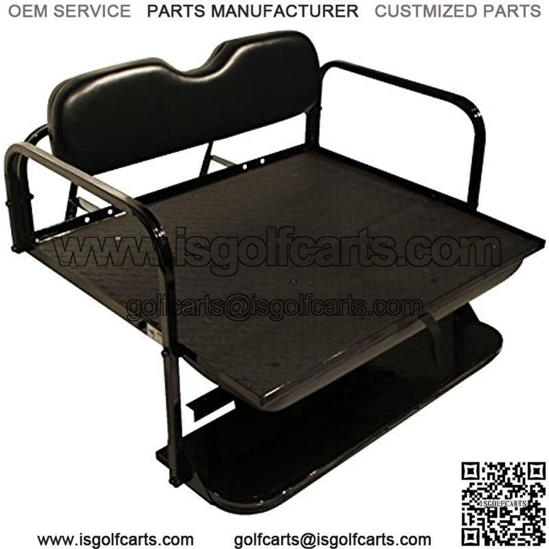 FITS: Yamaha G14, G16, G19, G22 Gas and Electric Models Black Marine Grade Vinyl Factory OEM Matched Cushions Heavy Duty Powder Coated Frame to Resist Fading Diamond Plate Patterned Flip Out Composite 42W X 32D Cargo Deck Full Color Installation Instructions