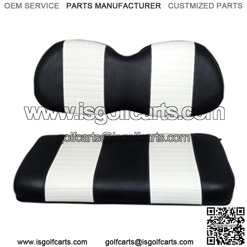 Dress up the look of your golf cart today, with this two-tone replacement seat cushion set! Each set includes the complete seat assembly: foam, plywood, and a vinyl cover.Specifications:Fits Precedent 2004-UpBlack with white center stripesMade from high-quality marine grade vinylTwo-piece set (includes seat bottoms and backs)Measurements: 38.5 x 19.5 x 5.5″ (bottom)38.5 x 15 x 5″(back)Simply remove seat handles and seat hinges from your old seat bottom and re-attach to new seat