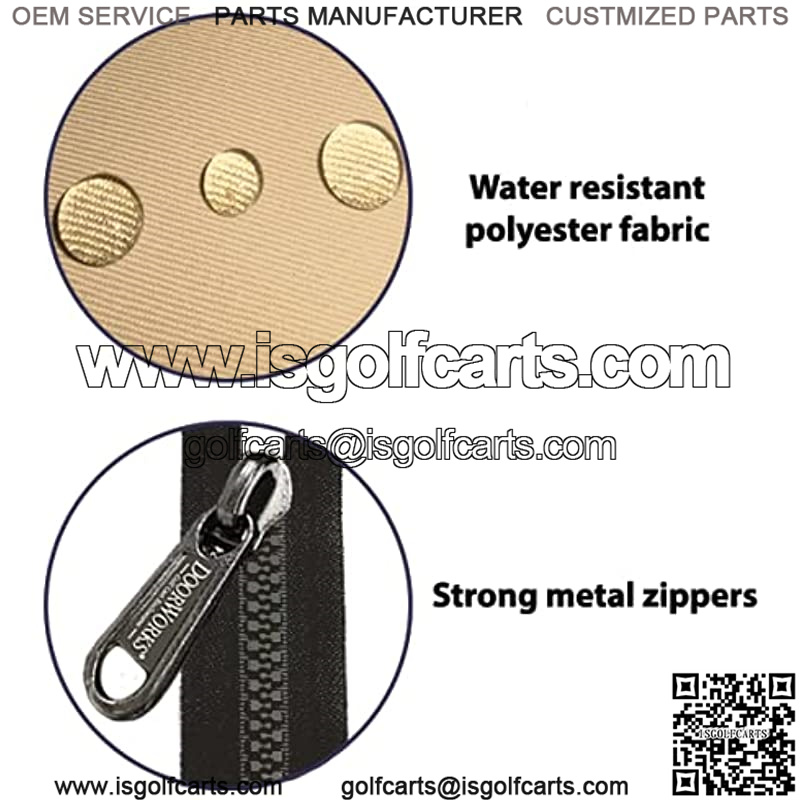 Water Resistant Materials Over-the-top enclosures are made of a thick, durable, water-resistant canvas-like polyester. Protect your cart, clubs, and possessions with a rugged cover built to last.