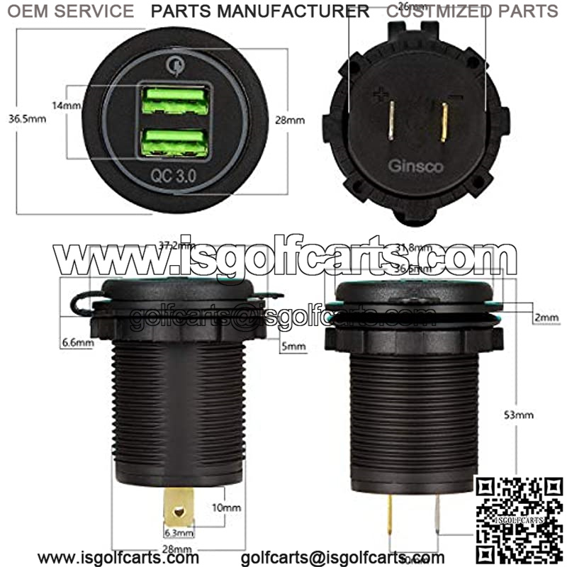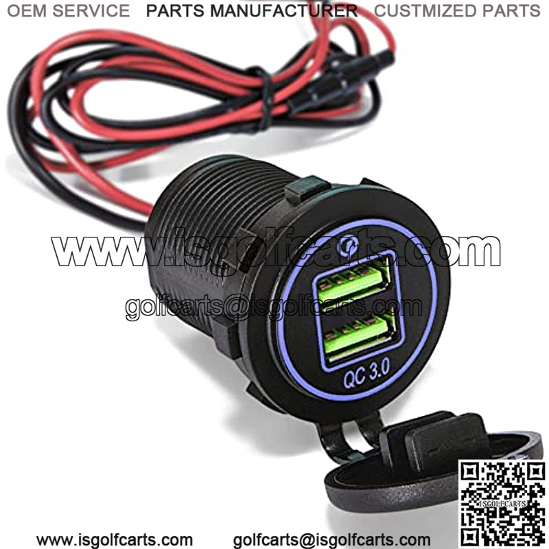 Quick Charge 3.0 Dual USB Charger Socket Fast Charger with 10A Fuse Wire DIY kit LED Blue for Car Boat Marine Motorcycle Truck RV