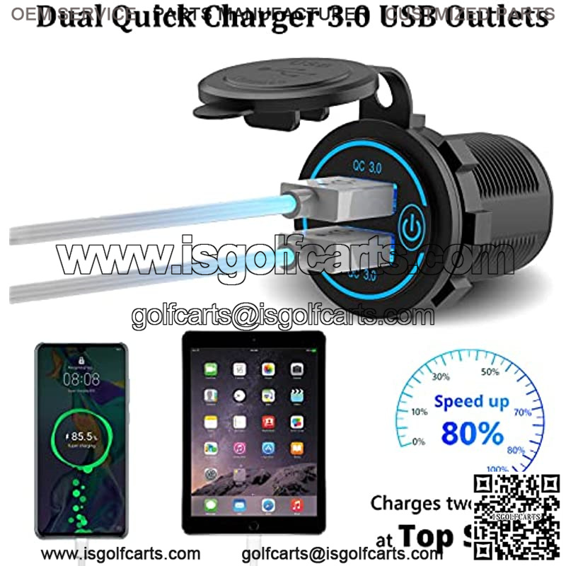 Quick Charge 3.0 Dual USB Charger Socket, Qidoe Waterproof 12V USB Outlet 36W Dual QC3.0 USB Power Socket with Touch Switch DIY Car USB Port for Car Boat Marine RV Motorcycle Bus Truck Golf Cart etc