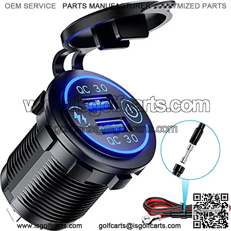 Quick Charge 3.0 Dual USB Charger Socket Waterproof 36W 12V 24V USB Outlet Fast Charge with Touch Switch & Blue LED DIY Kit for Car Boat Marine ATV Bus Truck Golf Cart and More